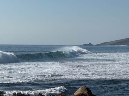 Celina and I have seen whales off the coast in Alaska (see PCs 44 and 45 June 2015) and in WA we were lucky enough to be here at the start of the annual whale migration, from their wintering north of Australia where they calved, to their summer feeding grounds in the Southern Ocean. Whilst you could see them surfacing and breathing, they were so far offshore that no iPhone photograph was going to do more than capture a moment of broken water in the distance. Even so, quite magical!