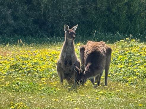 At the lodge Josefinna had messaged us to say she’d seen some kangaroos up near the entrance. We found three, but leaving the following day we found more than a dozen up near Petra’s Olive Oil plantation.