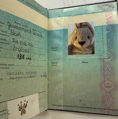 “Ah! Yes! George, the bear given to you by the staff of the George Hotel in Christchurch. To add to the bear given to you by the crew on our Singapore Airlines flight, and the stuffed little lamb from the manager of the Sofitel Viaduct hotel in Auckland. Weren’t you spoilt? But you’ve kept George?”