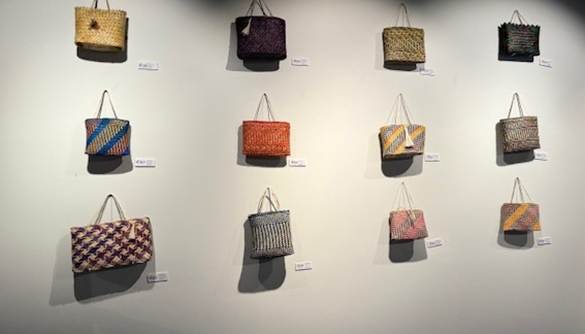 A Master craftsman was concentrating on a little wood carving while elsewhere an apprentice was sharpening a chisel. The craftswomen weave beautiful bags, made from New Zealand flax, but they are expensive; for instance, the second left on the bottom row around £210.