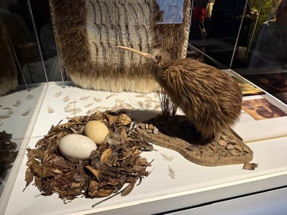 The Kiwi, a small flightless bird, is recognised as an icon of New Zealand and the human population are often referred to as Kiwis. It’s the smallest of the ‘ratites’ family, which includes ostriches, emus and rheas. In Te Puia there are a number of these nocturnal birds in a carefully controlled habitat. Obviously, photography is forbidden in their hide but this photograph shows a stuffed bird and its eggs. Think the eggs rather large for a small bird; must be painful?