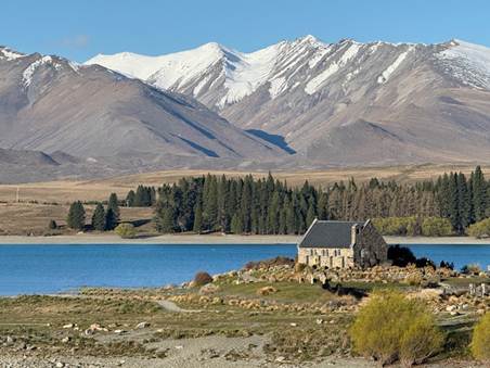 Then above the lake, because of the purity of the atmosphere, the University of Canterbury has an observatory on Mount John to the west of the town, from where there are glorious views of the lake and to the west, of New Zealand’s highest mountain, Mount Cook (3755m); not to mention the stars in the night sky.
