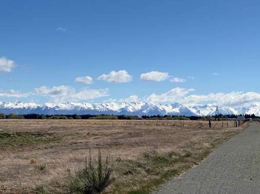 A very flat expanse of countryside and then, on the horizon, the Southern Alps. It reminded me of a trip many decades ago, driving down to Rome from Germany. Passed Strasbourg, passed Colmar and suddenly, before you get to Basel, you see the European Alps filling the horizon.
