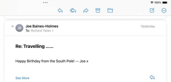 “Great. Dinner in a new restaurant in Church Road, Maré, and all the normal birthday stuff, including birthday wishes from Joe at the Amundsen-Scott South Pole Base. (see PC 403 Idle Thoughts about This and That September 2024)