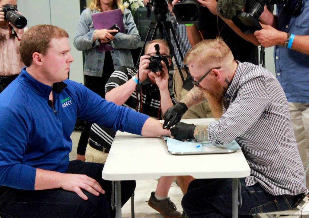 A researcher having a microchip implanted