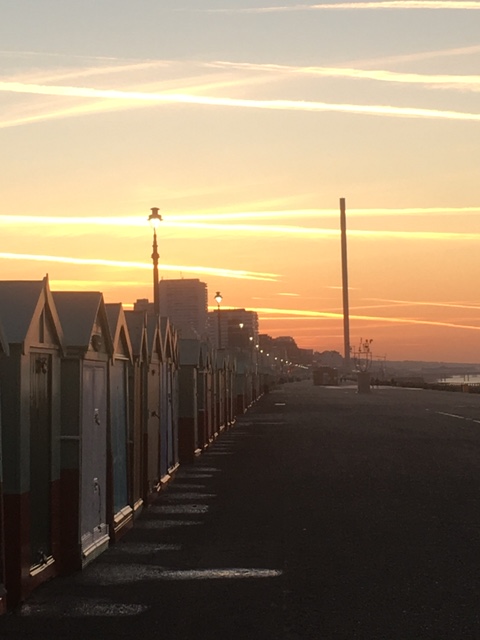 Dawn over Hove beach huts