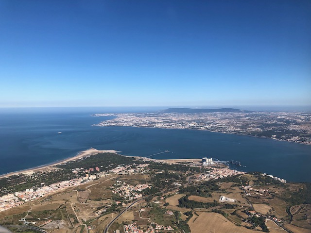 The Tagus estuary with Estoril & Cascais top centre. You can see the wooded hills around Sintra on the horizon and then it’s the Atlantic coast.