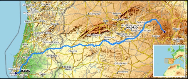 So what would the producers of Bill Nighy’s series have made of the Tagus? Firstly it rises in the Sierra de Albarracin in eastern Spain, a thousand and seven kilometres from its mouth, and all its main tributaries flow into it from the north. The first major city along its banks is Sacedón.