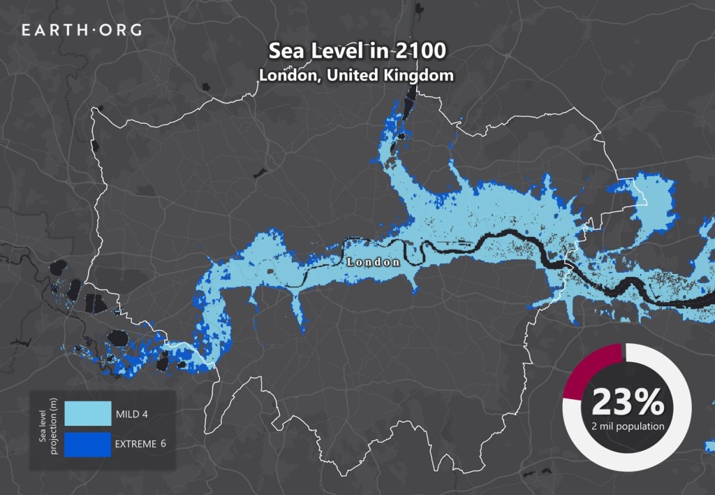 Predicted sea levels in London in 2100