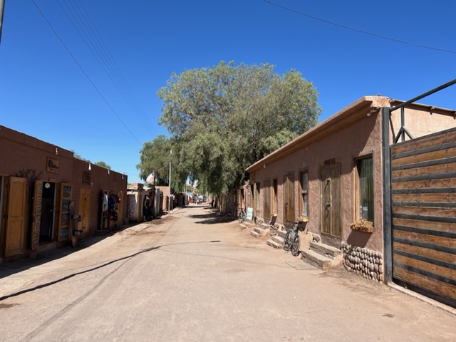 Distinguished by the reddish colour of its clay buildings, it’s …. “a town set on a high plateau in the Andes mountains of north-eastern Chile. Its dramatic surrounding landscape incorporates desert, salt flats, volcanoes, geysers and hot springs. The Valle de la Luna nearby is a lunar-like depression.”