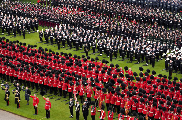 But at the end of the coronation, seven thousand of the troops who had taken part marched into the grounds of Buckingham Palace and formed up in long ranks on the grass; not easy marching in time on grass. Rifles were laid on the ground, headgear was removed and as the new King and Queen arrived at the rear of the building, the Sergeant Major in charge of the parade gave the order:
