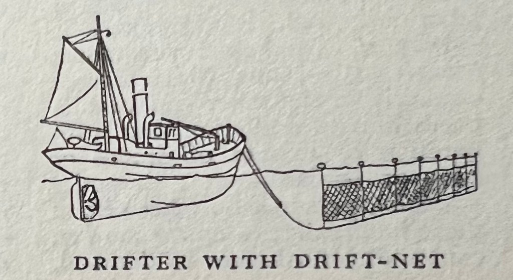 Away from the world of lyrics this is a simple illustration of a drift net, used for catching, herrings, mackerel and pilchards: