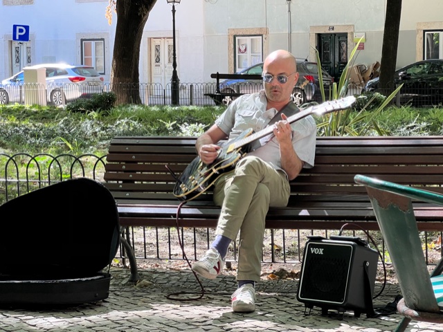 In central Lisbon there is a lovely shaded square called Jardim das Amoreiras, a place where local inhabitants can sit under the Mulberry trees, collect a snack or a drink from the little café and if they’re lucky listen to music from an itinerant guitarist.