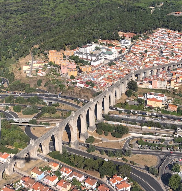 The south west side of the square is bounded by part of the magnificent Aqueduto das Aguas Livres, an 18km aqueduct