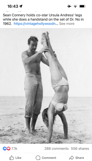 We all went up to my mother-in-law and Toni’s room on the first floor before Celina and I went up to ours. At the end of the corridor was a floor-to-ceiling mirror and in the middle a framed black & white photograph of Sean Connery and Ursula Andress.