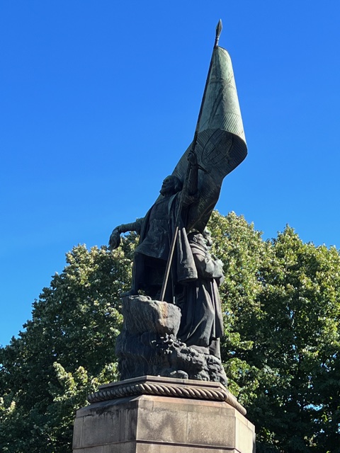 At first glimpse, against the bright sky, I may be forgiven for thinking the statue is of a hooded witch with a staff, bending forward. On closer inspection it’s Cabral with a flag blowing in the wind – well, frozen in bronze wind.