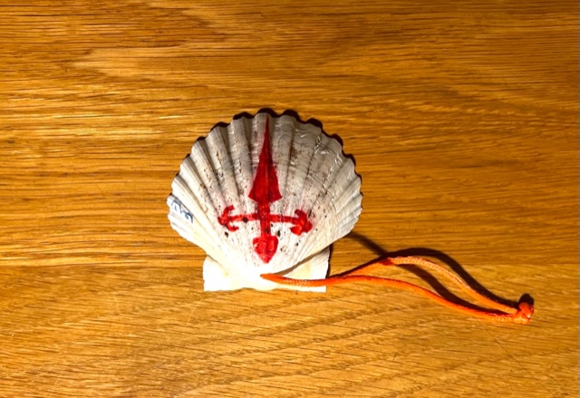 My friend and yoga chum Armi, an Italian from Naples who is a head trainer within the Schwarzkopf company, likes nothing better than sitting on a mountain top in solitude for days at a time, his antidote for the crazy modern world of his work and of his home city. Recently he walked the second piece of the Camino Trail from Santiago to Finisterre where Spain meets the Atlantic. On his return he gave me a little shell. Deeply touched, I asked what the cross was. “St James’. Obviously.”