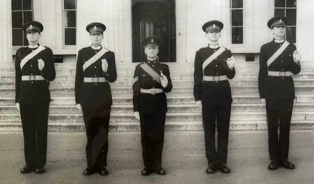 Prior to the Commandant’s Parade on a Sunday morning, the four Stick Orderlies would join him and his family for breakfast in the extremely large house which went with the job. I was a Stick Orderly for a year and recall that, after breakfast and before we needed to get moving, we would gather in the Games Room in his basement and compete on his Scalextric set. Such fun and far removed from our next task, the tradition of escorting him and the Adjutant to where the other 886 cadets were lined up for inspection.