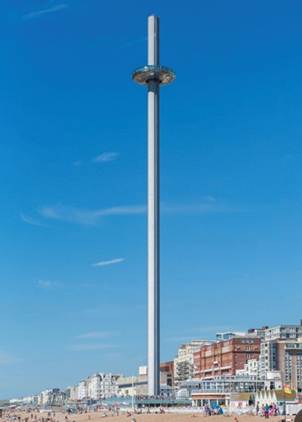 Note 2 The so-called i360 is a 162m tower erected on Brighton’s seafront in 2016. It’s opposite the skeletal remains of the City’s West Pier, which burnt down in suspicious circumstances in 2003. A 200-person capacity observation capsule rises to 138m so visitors can take in the view.