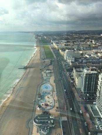 The view west. We live just inland from the top of the green strip (Hove Lawns)