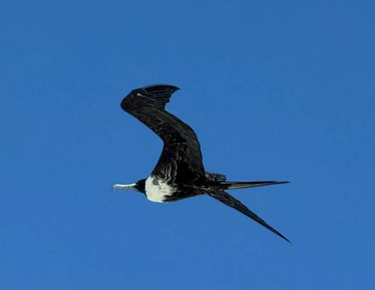 With the aid of Google I learned it’s called a Frigate bird. They are apparently found across all the tropical and subtropical oceans. Characterised by black plumage, deeply forked tails and long hooked bills, there are five extant species. Wonderful!